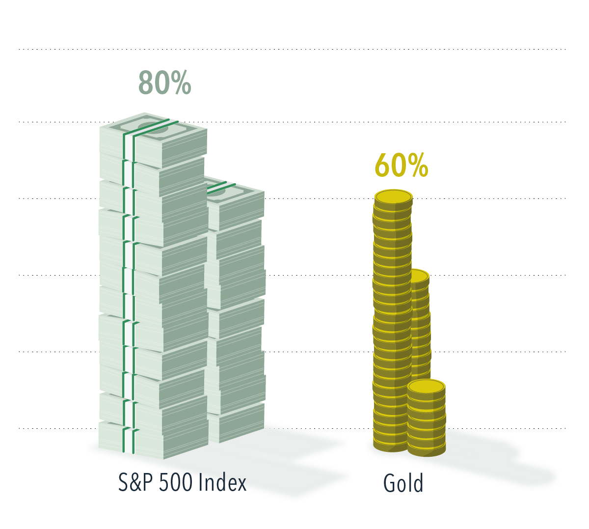 For example, if an investor decides to allocate 5% of their portfolio to gold and establishes 20% tolerance bands around that target, that means the acceptable range would be roughly 4% to 6%.
